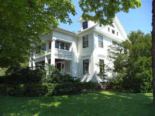 The more academic, Georgian Revival style appeared to a limited degree in Oshkosh. The most monumental example is the Gates House located at 404 W New York Avenue. This design features a full portico complete with triangular pediment. A “modernization” of an Italianate dwelling, the Horn House, 1662 Doty Street, included a grand portico; however, as in most examples, the portico appears out of scale (undersized in this instance, oversized in others).